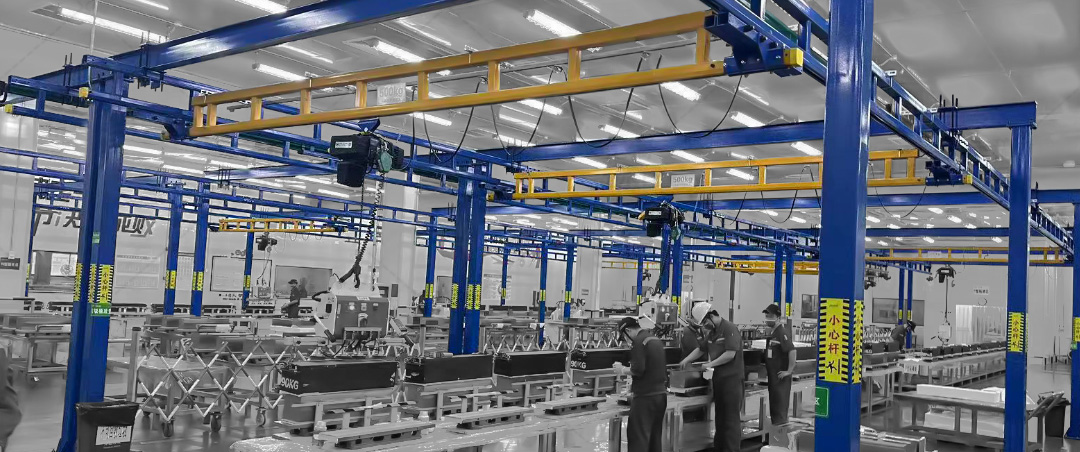 一套型轨系统上可安装多根主梁,有效提高该工作区域的生产效率和灵活性